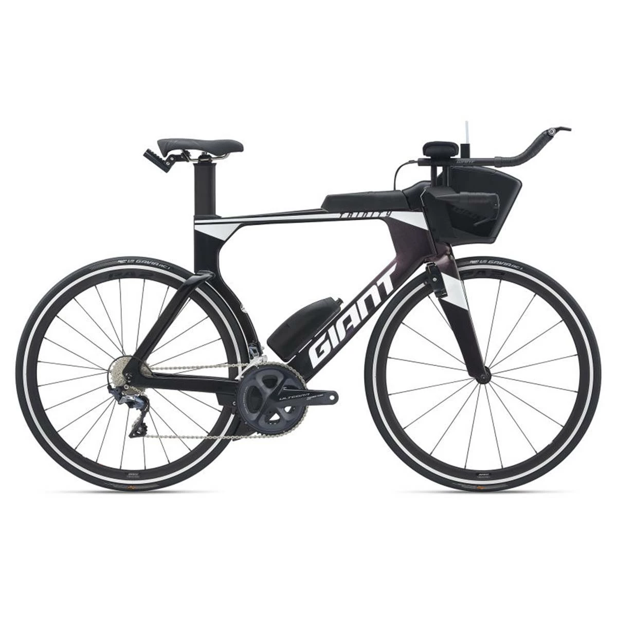 Conçue pour répondre aux exigences des triathlètes professionnels et des coureurs de contre-la-montre, cette véritable petit bombe a tout pour plaire!Conçu à partir de données numériques de mécanique des fluides et de tests en soufflerie, permettant d’optimiser la forme de chaque tube, le Trinity Advanced Pro offre un avantage aérodynamique éprouvé. Fabriqué à la main en composite Advanced et méticuleusement formé avec la technologie AeroSystem Shaping de Giant, il découpe littéralement l’air mieux que tout autre vélo de sa catégorie. Conçu pour la course contre la montre, pendant un triathlon ou un chrono sur route, il offre un confort non négligeable pour les entraînements et les courses de longue distance. De plus, son système AeroVault unique comprend une unité d’hydratation avant intégrée, une boîte de rangement pour le tube supérieur et une bouteille d’eau pour tube inférieur qui, ensemble, améliorent les performances aérodynamiques du vélo sur la route